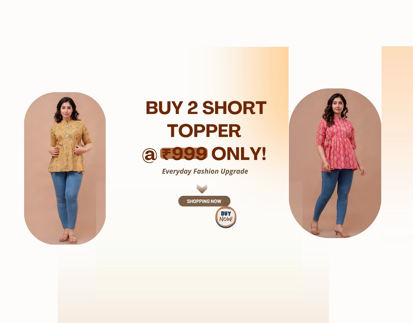 "Floral Print Cotton Peplum Short Kurti for Women – Light Blue"